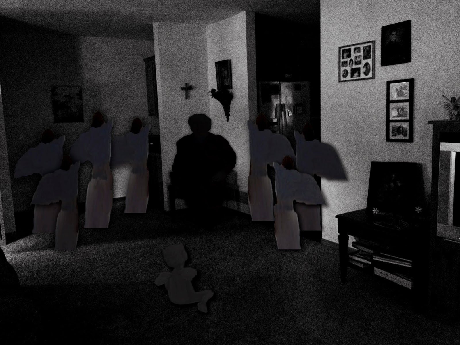 As the image came into view once again, I now realized there was a smaller winged figure sitting in the middle of the floor between mom and I; he was facing mom, as well, with his legs folded underneath and vee'd out next to him. Realizing that what I was seeing were angels in the room with mom and I, I felt sure the younger angel was her older brother who had died as an infant, and the others were my grandma and grandpa, my great aunt Marie, and mom's grandparents.